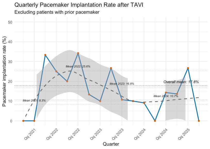 Figure 2: Temporal trend for pacemaker implantation rate with the self-expanding NAVITOR valve