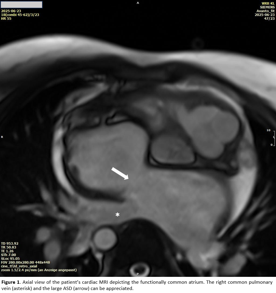 The patient's cardiac anatomy was consistent with a classic DILV featuring a functional single ventricle and ventriculo-arterial discordance. Additional findings included a large atrial septal defect (ASD) with a functional common atrium and a common right pulmonary vein (RCPV). Pre-procedural evaluation comprised an MRI and right-heart catheterization.